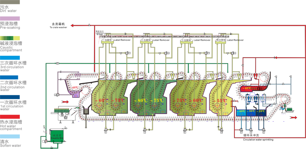 SXP系列超高速双端洗瓶机清洗流程图