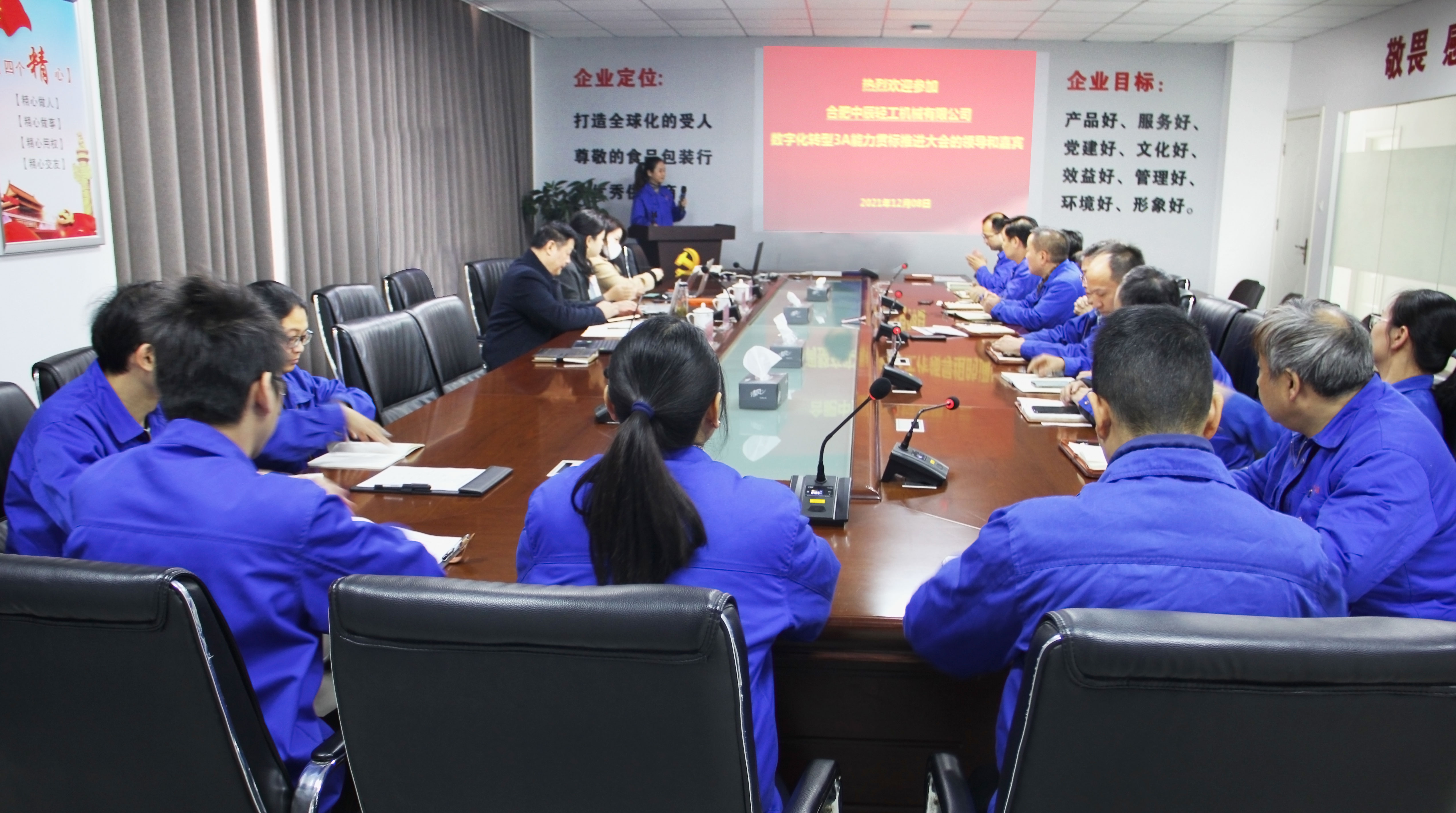 On December 8, 2021, Hefei Zhongcheng Light Industrial Machinery Co., Ltd. held a conference on upgrading the two-integration management system and promoting the 3A ability certification for digital transformation. Chairman and General Manager of Zhongcheng Light Machinery, Zhao Zhengwang, Director of the Two-Integration Integration Committee of Anhui Province, Song Zhang, and other relevant department leaders and officials attended the conference, totaling 24 people.