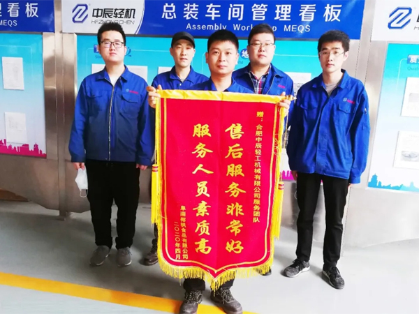 The Service Team of Zhongchen Light Machinery's Assembly Workshop Receives a Thank-you Banner from a Customer