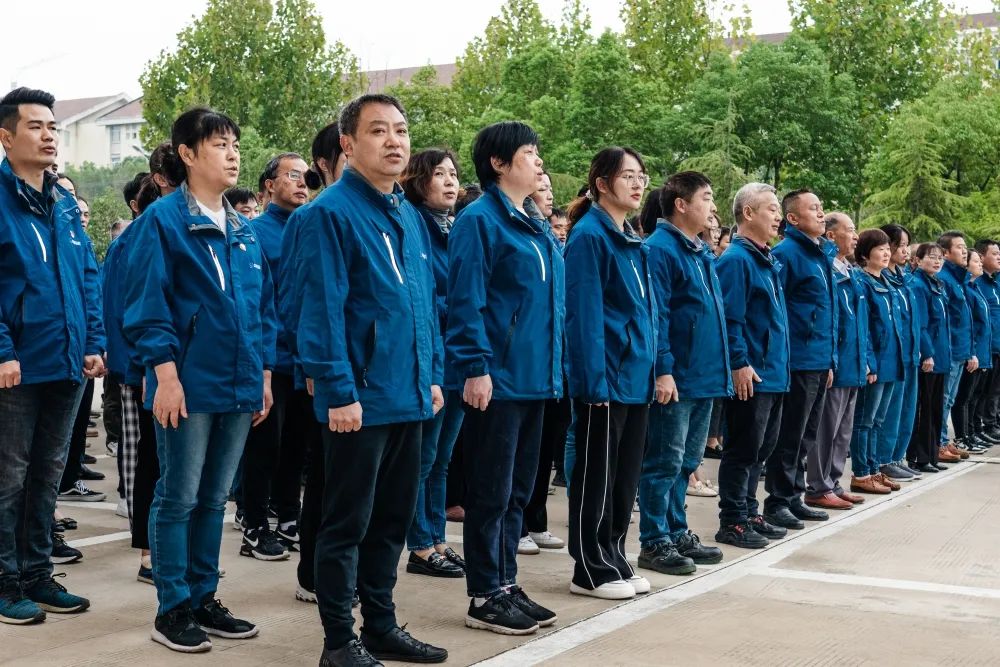 At 8:58 am, the flag-raising ceremony officially began. With the sun's rays shining brightly, all employees lined up in a neat and solemn manner. The handsome flag bearers marched with a confident and powerful gait, escorting the national flag to the flagpole. Accompanied by the majestic and stirring tune of the "March of the Volunteers," the vibrant five-starred red flag rose majestically into the air and waved in the wind. In the resounding national anthem, all the participants paid respect by fixing their gaze on the rising flag.